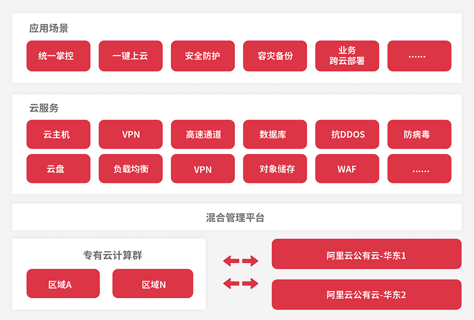 以“多云管理平台”为核心,输出鹏博士大数据专业技术能力与多云接入资源,为客户提供专业云计算服务。